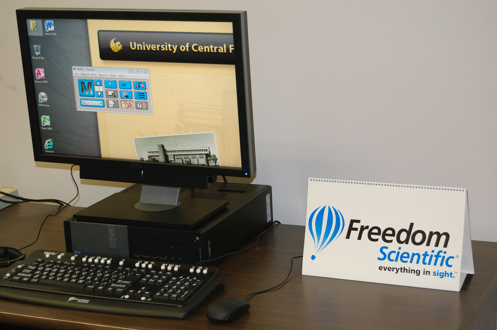 Individuals must be trained to get the most benefit from the equipment. If you are unfamiliar with the assistive technology used in the library, UCF Student Accessibility Services keeps a list of support agencies that offer instruction on using it. This equipment is useful for persons with print-related impairments who wish to conduct independent research using the Library’s electronic resources.
